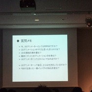 最後の「若手3Dアニメーターの生の声を聞く」のコーナーでは、本田氏と敷島氏から「最初にやった3Dアニメーションの仕事」や「今まで出会った一番インパクトのある先輩」などの体験談が披露された。また「3Dの最強の教科書」では、『Autodesk 3ds Max Autodesk 3ds Max Design ビジュアルリファレンス』という3DCGアプリケーションの参考書や、『アニメーターズ・サバイバルキット』というアニメーションの原則に関する名著が紹介されるなど、これからアニメ業界をめざす学生にとって実りの多いセッションとなった。