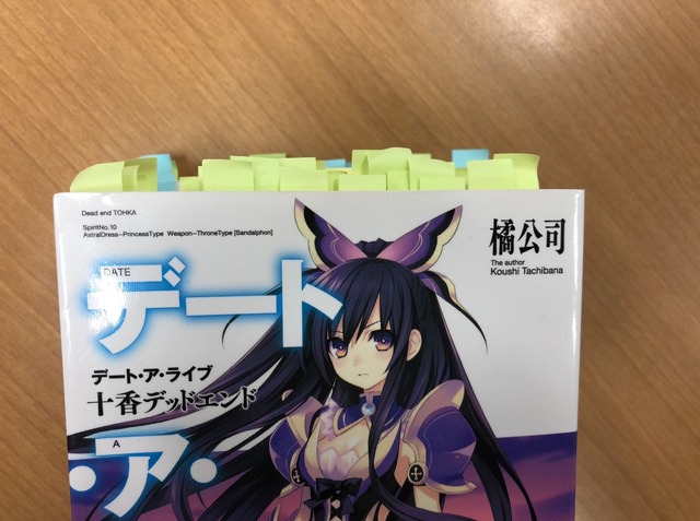大森先生がコラボのために読み込んだ『デート・ア・ライブ』原作小説。付箋がビッシリ!