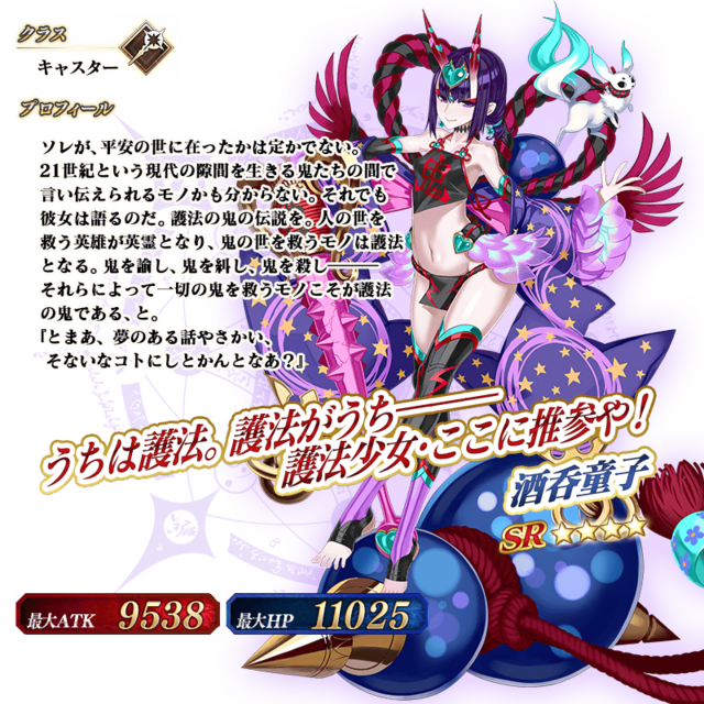ボリュームがかなりあるので、メインストーリーを進めるのはなかなか大変ですが、苦労に見合う分の報酬が「神秘の国のONILAND!! ~鬼の王とカムイの黄金~」にあるのでご安心を。本イベントのストーリーを最後まで進めると「★4(SR)酒呑童子」が加入。彼女のクラスはキャスターで、単体攻撃宝具を所持しています。