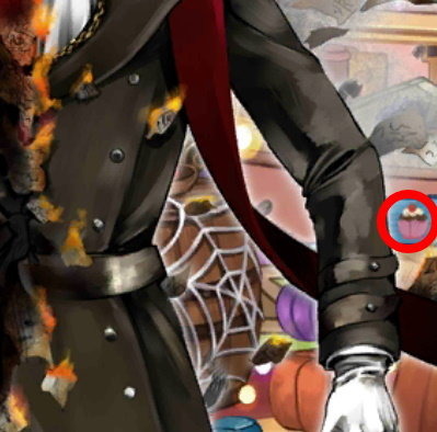 ハロウィン★タウンには、2015年のハロウィンイベント「歌うカボチャ城の冒険~マッドパーティー2015~」で登場したアイテム「いたずらコウモリ」、「スイートキャンドル」、「プチケーキ」の3つが隠れています。顔の彫り方が多少違うのに目を瞑れば、同イベントで登場した「かぼちゃランタン」も山のようにあると言えますね。