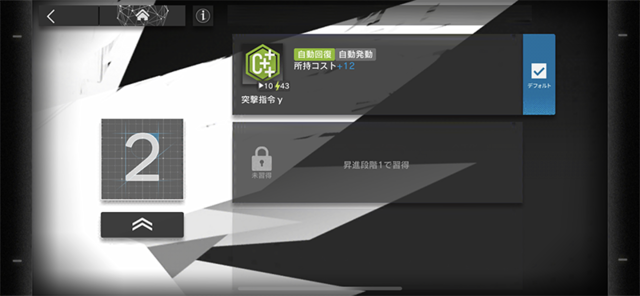 攻撃力が高く、スキル「攻撃力強化β」によって+20%されます。さらに、「敵を倒す度に所持コスト+1、撤退時に初期配置時のコスト返却」という使い勝手の良さ。本当に星4なのか目を疑う性能の高さです。