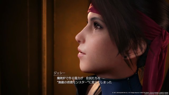 彼女たちが知るよしもありませんが、予想を超える被害は神羅の工作が原因。しかしジェシーは、他の可能性を考慮するよりも先に、自分のミスの検証から始めます。自分の行動に責任を負う姿は、クラウドにアプローチしていた時とはまるで異なりますが、これも彼女の一面です。