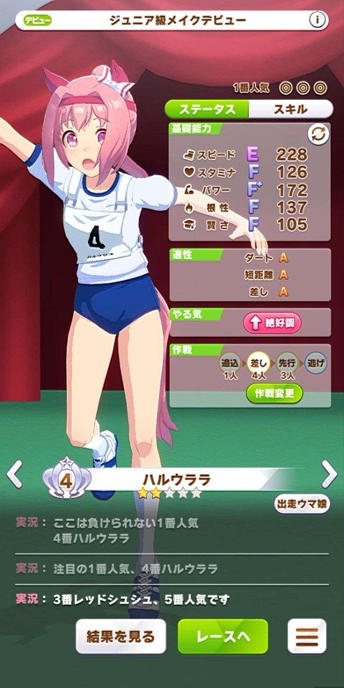 体操服といえば、ハルウララの勝負服。残念ながら筆者はまだ未解放ですが、果たして勝負服が体操服な彼女は、どうなるのでしょうか。