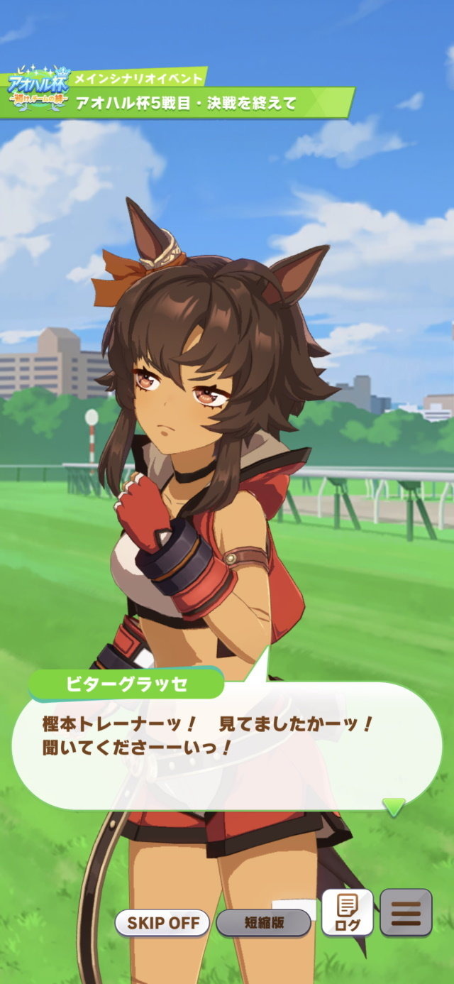 トレーニングを繰り返し、半年ごとに開催される「アオハル杯」を戦っていく中、シナリオストーリーではチーム練習の利点も語られれば、チーム練習の問題点にも直面。それらを乗り越え、樫本代理との直接対決「vsチーム」が始まるのです。