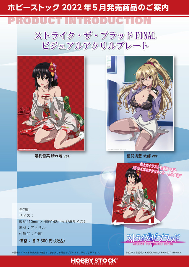 アニメ『ストライク・ザ・ブラッドFINAL』のビジュアルアクリルプレートが登場。全国のホビー・アニメショップ、WEB通販サイトなどで予約を受け付けている。