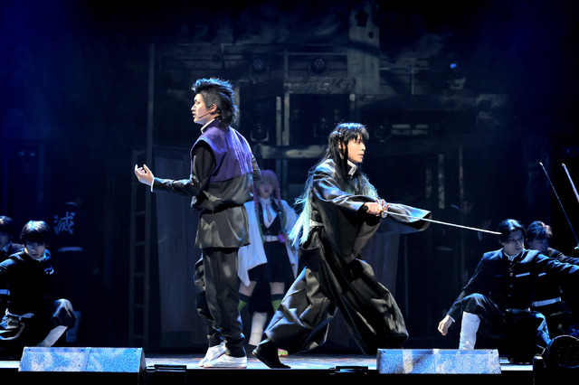 舞台写真は、炭治郎の活躍シーンに加えて、シリーズ初参加の黒死牟役の加藤和樹、童磨役の浦井健治らが映像出演する上弦集結のシーンも確認できた。