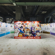 会場では「お出迎え描き下ろしビジュアル」、「ジャンプ+展スペシャルシアター」、「ジャンプ+ロード」など、広々した空間を活かしたダイナミックなサイズで、イラストや映像が展示されている。