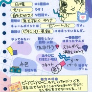 プロフィール帳には、かわいらしい自画像が描かれ、初MCにかなり意気込んだ様子。相方になるせりこさんに対しても、とても熱い思いを寄せています。対してせりこさんも「私が守る! もう変なことさせないからね!!」とメッセージ。まるで、「声優と夜あそび」が過酷な番組であることを物語っているかのように……。