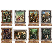 B賞には「アニ フィギュア」を、C賞ではリヴァイ、ハンジ、エルヴィンの3人が壁の上から外を目指す瞬間を水彩風タッチで表現した「アクリルボード」を用意。その他の賞では「ティーカップ&ソーサーセット~リヴァイモデル~」や「アクリルスタンド」「ホログラムステッカー」などを展開します。