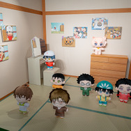 設定資料コーナーの途中には、ショートストーリー「テニプリ一家」より、貞治と秀子の部屋を再現した展示が。青学メンバーが家族に扮したドタバタコメディを場面写真と共に振り返ることができる。