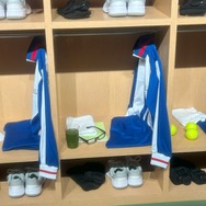 フォトスポットコーナーでは、青学メンバーのロッカーを再現した展示を発見。海堂のバンダナや桃城のハンバーガーなど、各キャラを象徴するものが置かれている。そして乾のロッカーには、おなじみの「乾汁」が……!