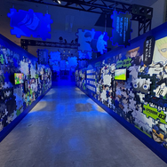 まず、エントランスではオープニングムービーが流れています。映像を楽しんだあとは、ブルーロックスタジアムへ。ここではサッカースタジアムが再現されていて、壁一面の観客と声援、人工芝の床などクオリティの高い展示空間が広がっています。ここでは、まるで自分が「“ブルーロック”イレブン vs. U-20日本代表戦」の試合会場にいるかのようなリアルな熱気を体感することができました。
