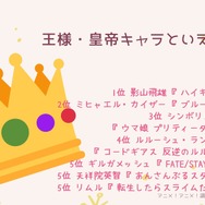 今回のアンケートでは、王様や皇帝という称号に相応しいカリスマ性や実力を持ったキャラクターが勢揃い。とくに主人公やライバルの立ち位置のキャラが目立つ結果となっています。
