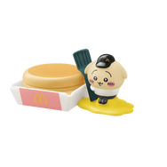 おもちゃの箱は、ちいかわたちがマクドナルド歴代クルーのユニフォームを着た特別なデザインだ。