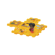 それぞれの四角いパーツを自由に繋げたり、付属のシールを貼ったりして、自分が思い浮かべた世界を創造することを楽しめる。