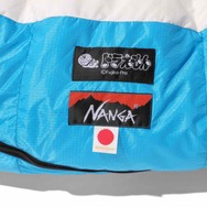 このたびリニューアル登場したスリーピングバッグは、水色の発色がさらにあざやかになり、首輪の赤い配色はネックの上下から下部のみに。細かなデザイン修正が施された。引きつづき水色・白・赤でドラえもんをイメージしたカラーリングにし、表生地の白部分に首輪の絵や四次元ポケットが再現されている。