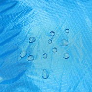 水色の部分に独自の防湿透湿ナイロン素材「オーロラテックス」を採用。撥水性が高く、水分は水滴となってはじくのでダウンを水濡れから守って高い保温力を保つとともに、発汗による蒸れも防ぐ。汚れも落ちやすい。