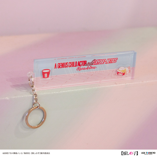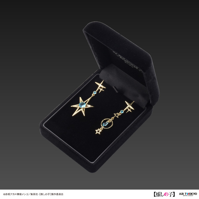 そのほか「レトロポップステッカーセット」「スパンコール入りポーチ」「レコード型ラメアクリルコースター」といったグッズや、重曹を舐める天才子役がかわいい「リキッドキーホルダー」、さらにアイ・アクア・ルビーの印象的な瞳を表現したピアスもラインナップされた。