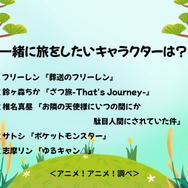 そこでアニメ!アニメ!では「一緒に旅をしたいキャラクターは?」と題した読者アンケートを実施しました。5月8日から5月12日までのアンケート期間中に87人から回答を得ました。