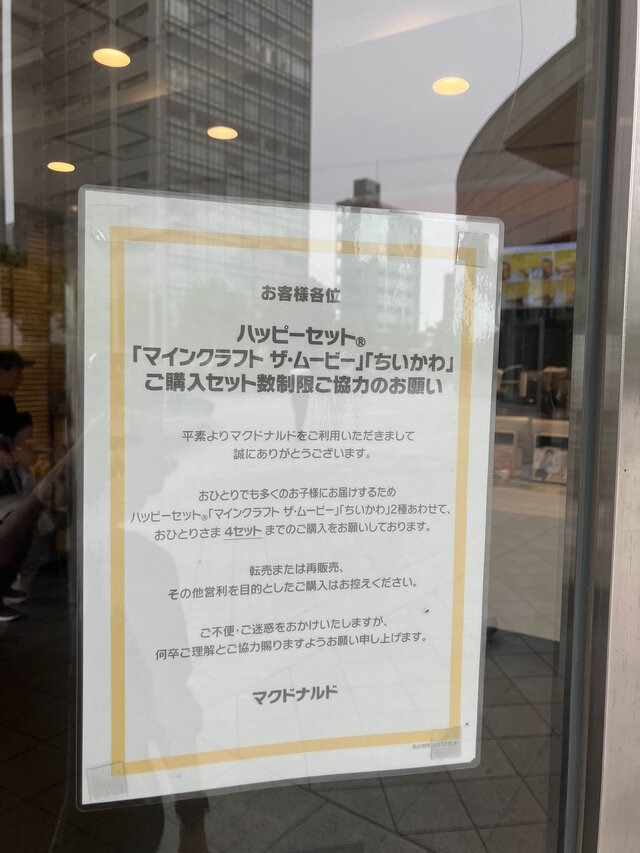 各ハッピーセットの販売期間は、本日5月16日から約4週間を予定。数量に限りがあり、なくなり次第終了となります。なお、1人でも多くの子供に届けるため、「マインクラフト ザ・ムービー」と「ちいかわ」2種あわせて、1人4セットまでの購入制限も設けられています。