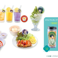 キャラクターをイメージした限定メニューを販売。ドリンクメニューは「猫猫のアップルスカッシュ」「壬氏の杏仁カルピス」など5種類、「シビれる具沢山麻辣湯(ゴマ団子付)」「猫猫のあんかけ炒飯」「壬氏のはちみつ照り焼きチキン」など5種類を用意。数量限定で「オリジナルタンブラー付きドリンク」(全2種)もある。