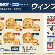 さらに、GiGOのたい焼き各店では、描き下ろしキャラクター6名をモチーフにしたコラボたい焼き「ウィンブレ焼き」が販売される。この「ウィンブレ焼き」は購入1点につき、「オリジナルコースター」を全12種からランダムで1枚受け取れる。
