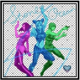 計3柄があり「空条 徐倫、E・コステロ 、F・F」柄は星と蝶のパターンをバックに空条徐倫、E・コステロ、F・Fがプリントされている。糸で描かれたStone Oceanと右下の蝶がポイントだ。「ウェザー・R」柄はウェザー・R の天気を自在に操る能力をイメージしたもの。空に雲と虹がかかる中様々な方向から降るカエルに、ウェザー・Rのベルトがフレームに表現された。