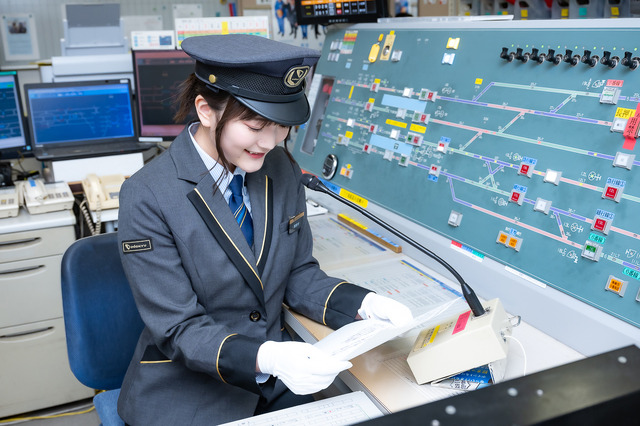 これには2人も喜んだ様子で、そんな駅長からレクチャーを受けつつ、まずは1日の運行の無事を祈願したり、業務に関する連絡事項の伝達を行う朝礼から始まった。安済と菱川は駅長の手本を参考にしつつ、集まった職員たちと仕事に入る前のスピーチを行った。