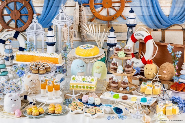 「すみっコたちのマリンパーティ」は、7月5日~8月31日の土曜日・日曜日・祝日限定で開催。スイーツと一緒にすみっコぐらしの世界観を満喫できる。