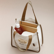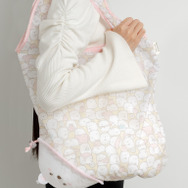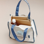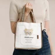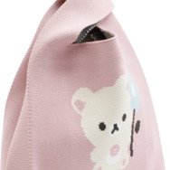 帆布+合皮製の「ミニトートバッグ」は500mlのペットボトルもすっぽり入り、ポケットからはぬいぐるみ(ポリエステル製マスコット)が顔を出す。かわいさと便利さを兼ね備えたバッグになっている。