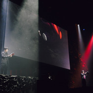金木に「私もあなたの事が好き」と告げたリゼは、ヒトに紛れ、ヒトを狩り、その死肉を喰らう“喰種”だった――。衝撃的な『東京喰種』1話を生アフレコで浴びる衝撃から抜け出す暇もなく、People In The Boxによる「聖者たち」のイントロが流れ出す。EDテーマとしてアニメを彩ってきた名曲が、映像とともにパフォーマンスされ、会場はさらに深く「東京喰種」の世界へと没入していった。
