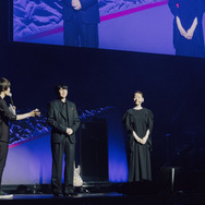 続いてピックアップされたのは、旧多二福(CV.岸尾だいすけ)の演説シーン。吉田アナのコメントにもあった通り、本人はウケをとろうと思っているのに怖くて誰も笑えないところが実に旧多らしく、同時に底知れなさをうかがわせる。『東京喰種:re』前半パートを締め括るのは、Cö shu Nieの「asphyxia」だ。美しいアカペラから一転、重厚かつ鋭い音圧で畳み掛けられる圧巻のパフォーマンスに、会場からは大きな拍手が送られた。