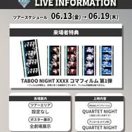 このたび、6月13日から配布開始の6週目来場者特典が「TABOO NIGHT XXXX コマフィルム 第1弾」であることが発表。数量限定で、フィルムの特性上、非常に多くの絵柄が用意されているとのこと。フィルムの絵柄は選べないのでご注意を。