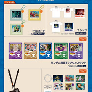 フラワーリング公式オンラインストアでも取り扱い中の商品のうち、大人気の場面写をデザインしたシリーズには「PVCポーチ」、「ランダムフレームマグネット」、「箱入りシール」、「半袖Tシャツ」などが揃う。