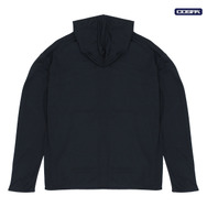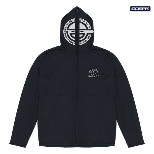 「COSPA(コスパ)」によるこのたびの新作グッズのうち、「笑い男アイコン フルジップパーカー」はフードを閉め切ることで劇中さながらに“笑い男にハックされた”かのようになれる代物だ。