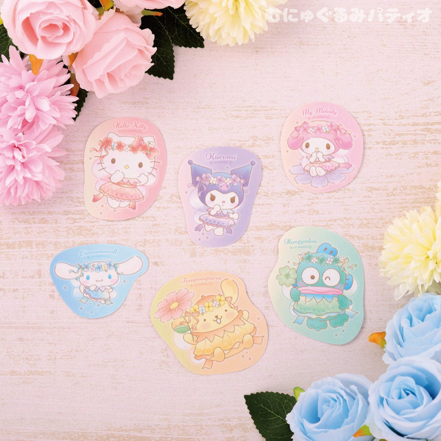 キャラクターグッズショップ「むにゅぐるみパティオ」によるこのたびの「フローラルフェアリーズシリーズ」グッズは、ハローキティ・クロミ・マイメロディ・シナモロール・ポムポムプリン・ハンギョドンの全6種のキャラクターラインナップが取り揃えられた。