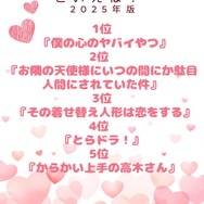 1位は『僕の心のヤバイやつ』。支持率は約8パーセントで、昨年の2位からランクアップしました。