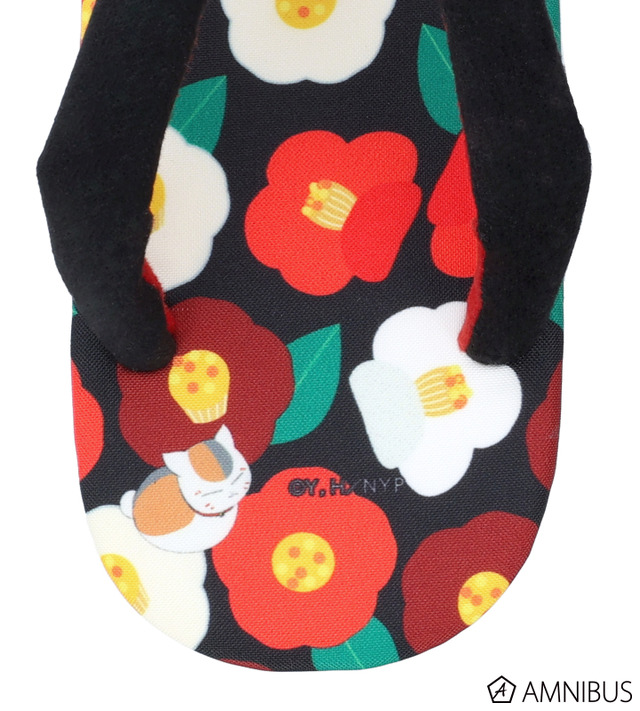 今回の「信貴」のコラボレーションアイテム「信貴コラボ ニャンコ先生 雪駄サンダル」は、ニャンコ先生と総柄の花を組み合わせたデザインとなっている。サイズは24.0cm、価格は10,780円(税込)。