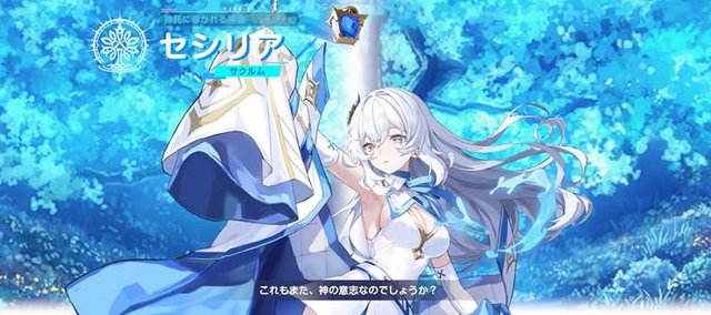 セシリアは「異世界の英雄とともに、この世界を救うように」という神託を受けた神官の少女。旅をする中でプレイヤーと出会い、彼がその英雄なのかどうか見極めるために同行します。まだまだミステリアスなところが多い彼女ではありますが、サブストーリーである「絆ストーリー」では彼女が方向音痴なことが明かされ、生真面目なだけではないセシリアならではのかわいい姿も見られそうです。
