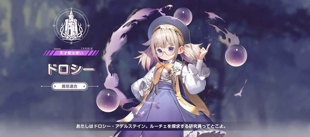 大魔法使いのドロシーはオルビス・アカデミーの若き研究者。ルーチェのことを研究していましたが、「具現者」であるプレイヤーに興味が湧いたことで彼の旅に同行します。彼女の紹介でパーティに加わるアウレリアとは親友同士で、アウレリアが大陸一の規模を誇るボンド商会の後継者となった今でも学生時代と変わらずじゃれあっています。普段はアウレリアを褒めないドロシーがアウレリアを褒め、うれしさのあまりデレデレになるアウレリアの姿は序盤の萌えポイントではないでしょうか。