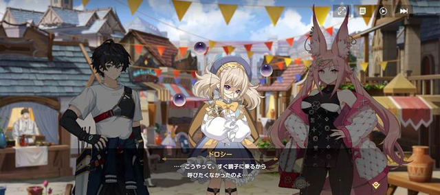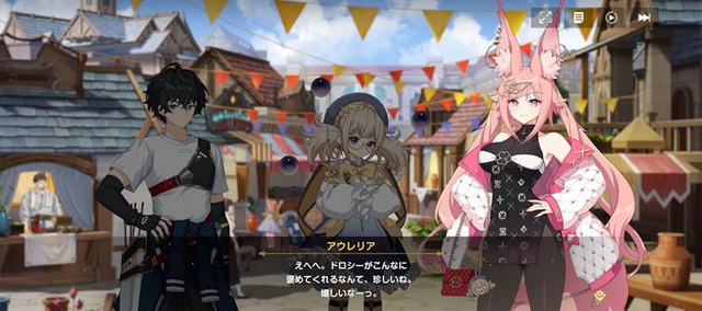 「テルビス」に出現するなりバトルの現場に出くわしてしまったプレイヤーは、そこで魔獣に襲われていた騎士レオ、神官セシリア、天才魔法使いドロシーと出会い、ともに近場の「自由都市ルー」へ向かうことになります。もともとレオ、セシリア、ドロシーは別々の目的でそれぞれ行動していたのですが、魔物が出現したことで一時的に協力体制に。その後、ドロシーの友人である商人の少女アウレリアをパーティに迎え、5人で「ルーチェ」探しの旅に出ることになります。