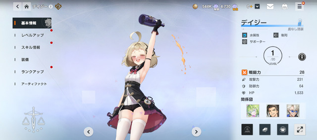 さらにその後は無料ガチャチケットを使いつつ、「ほかにどんなキャラがいるのかな?」と調べてみることに。すると未入手のキャラクターでもスキル確認ができる機能があるじゃないですか! 戦力的な面でもビジュアル的な面でも“お試し”できるのは親切なポイント。しかもそこで「この子欲しい!」と思えるようなキャラも発見しました。