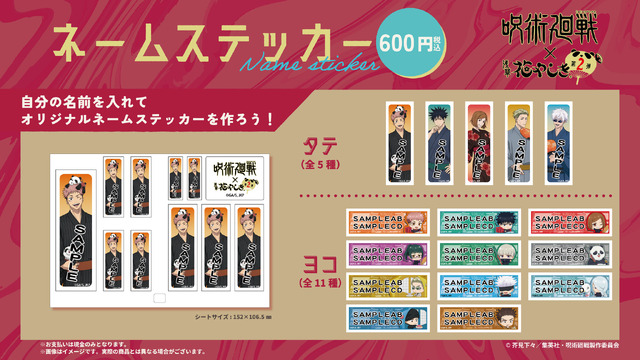 自分の名前を入れてオリジナルステッカーを作る。タテ(全5種)、ヨコ(全11種)のキャラクターから選択できる。料金は600円(税込)。