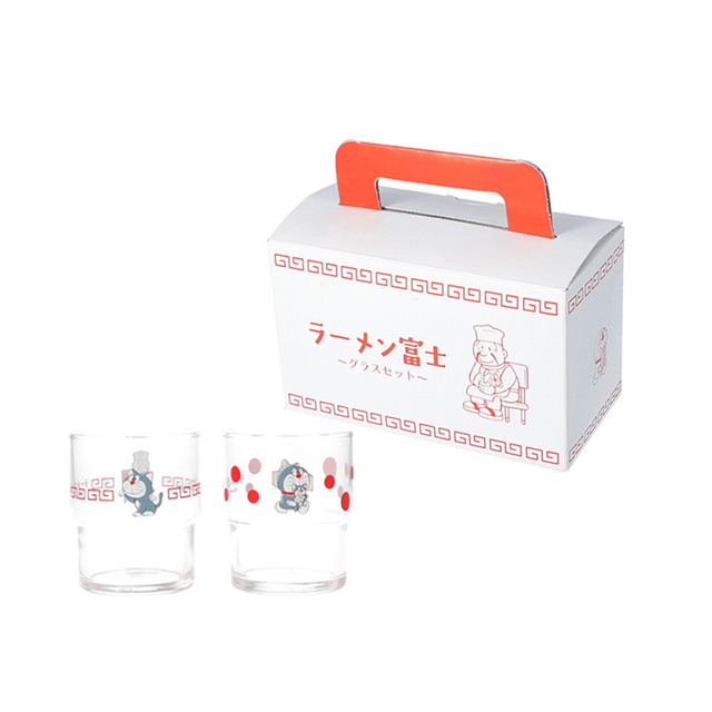 ドラえもん未来デパートオリジナル カムカムキャットフードを食べた猫 ラーメン富士のグラスセット