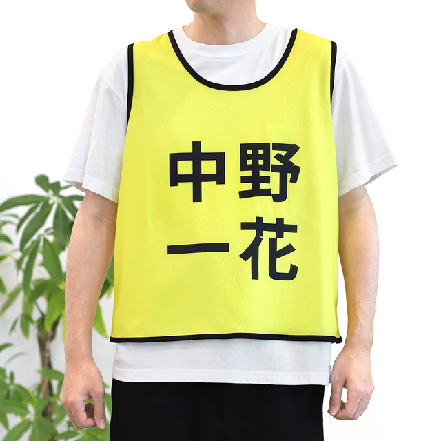 今回は定番アイテムの「アクリルスタンド」はもちろん、実際に私たちが着用できるフリーサイズの「ビブス」もリリース。キャラクターの名前入り、イメージカラーのビブスはインパクト抜群!