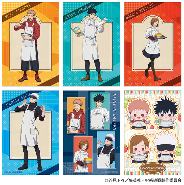 全国のアニメイト及びアニメイト通販では、10月4日から「TVアニメ『呪術廻戦』調理実習フェア」も開催。10月26日までの期間中に『呪術廻戦』関連のグッズを購入・予約内金1,100円(税込)ごと、または書籍・CD・Blu-ray・DVDを購入・予約(内金1,100円〈税込〉以上必須)1点ごとに、全6種の「ビジュアルカード」1枚をランダムでプレゼントする。