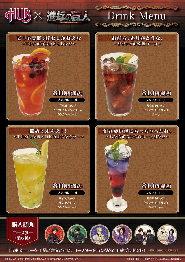 『進撃の巨人』× HUB コラボドリンクメニュー一覧