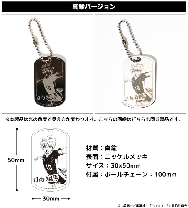 アニメ『ハイキュー!!』のキャラクタービジュアルが刻印された、アクセサリー感覚で持ち歩けるプレミアムドッグタグが登場。日向や影山ら烏野高校メンバーと黒尾や孤爪ら音駒高校メンバーの17種類が、「印鑑はんこSHOPハンコズ」のオンラインショップにて取り扱い中だ。