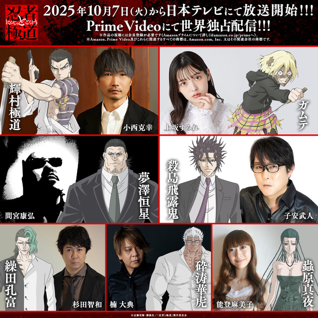 TVアニメ『忍者と極道』は、2025年10月7日から日本テレビにて放送され、Prime Videoにて世界独占配信も実施される。