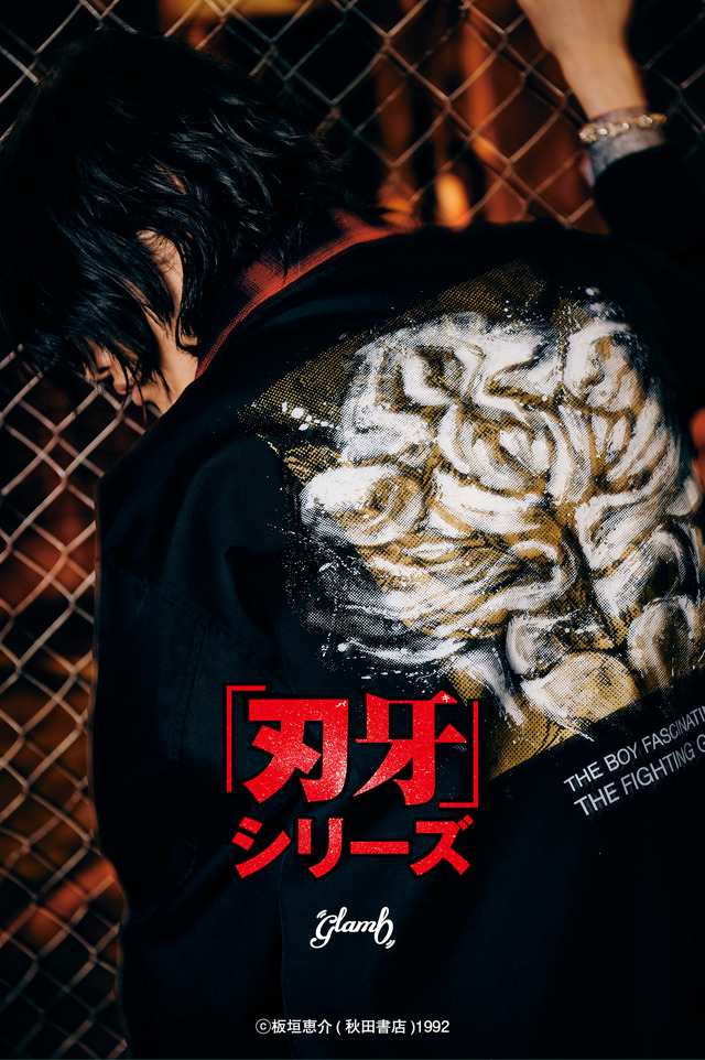 『刃牙』シリーズをストリートスタイルに落とし込むため、glambは「メタルTシャツ」や「バイカーファッション」など古典的な男性像を強調したスタイルを引用した。glambの得意とするファインアート的なグラフィックの描きおろしにより、シリーズの持つ世界観をリアリティあるヴィンテージルックに仕上げている。